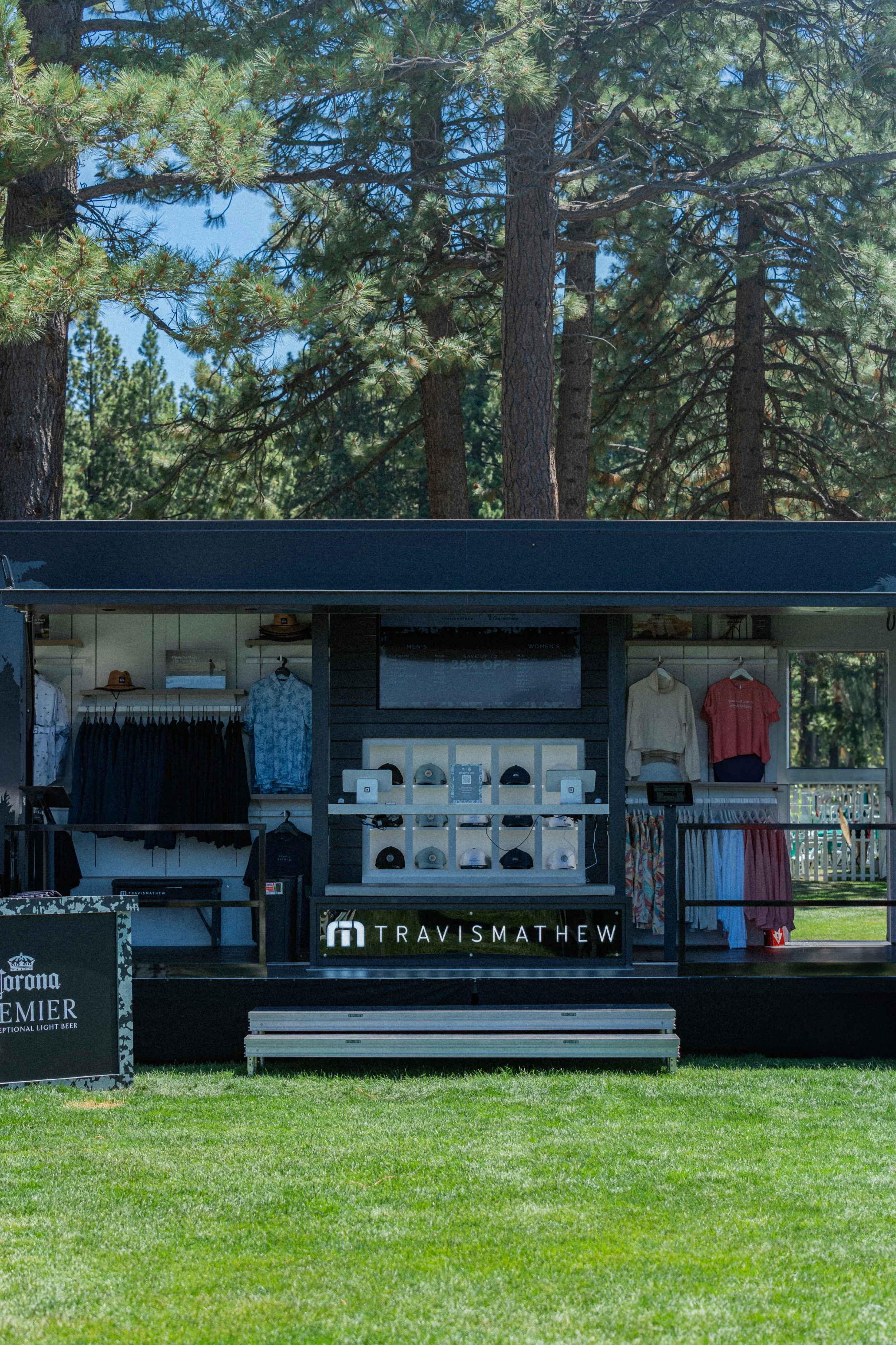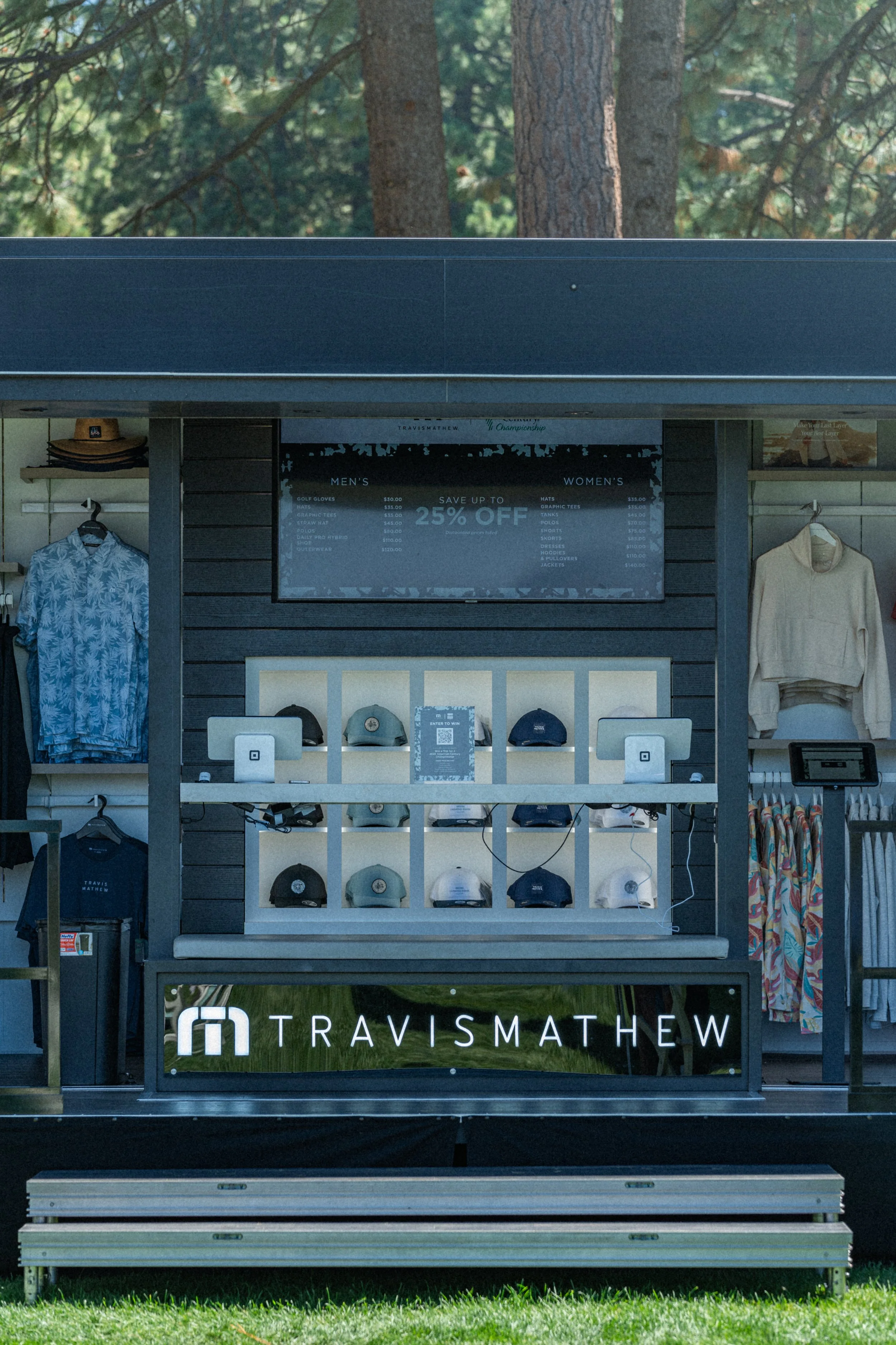Mobile retail shop for Travis Mathew clothing in outdoor setting